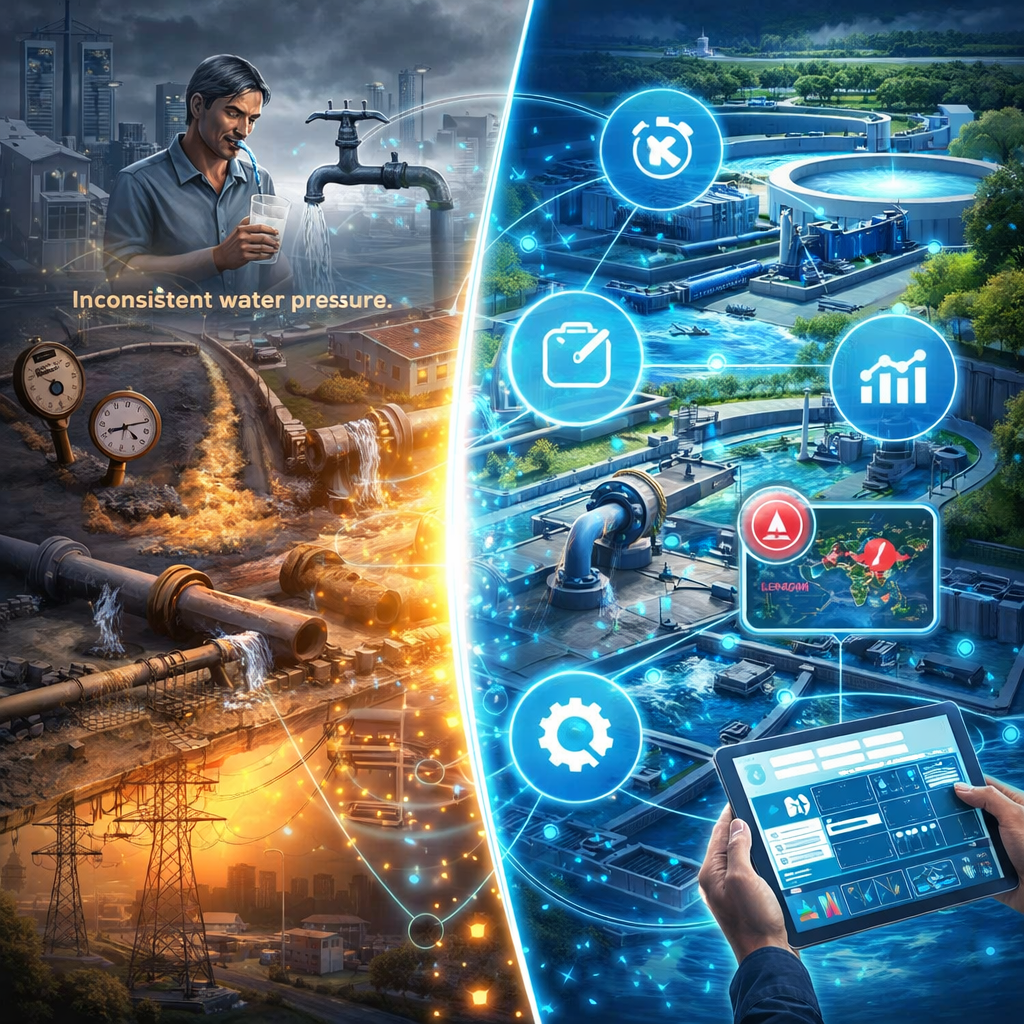 Smart automation maintains optimal pressure across the distribution network, improving service levels and reducing pipe stress.