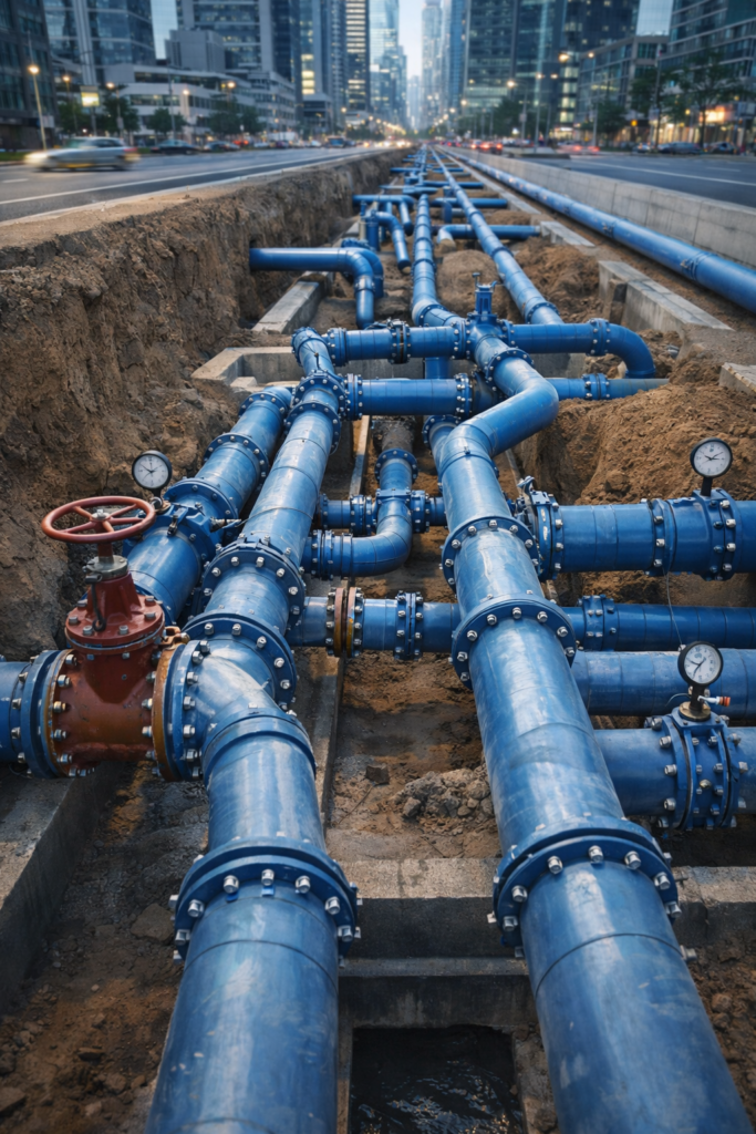 Efficient pipeline hydraulics ensures optimal water flow, pressure stability, and minimal losses across long distribution networks.